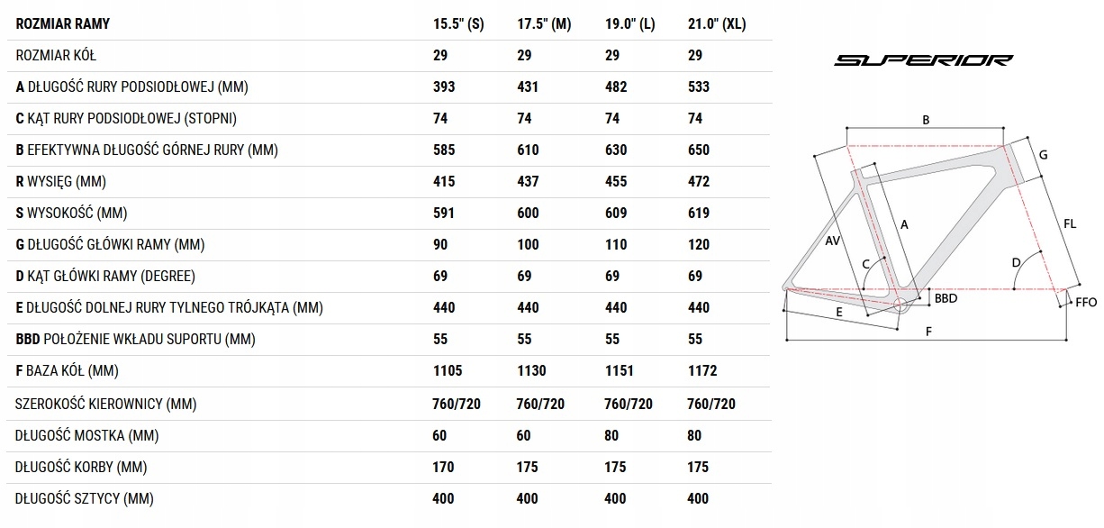 | Rozmiar ramy | |