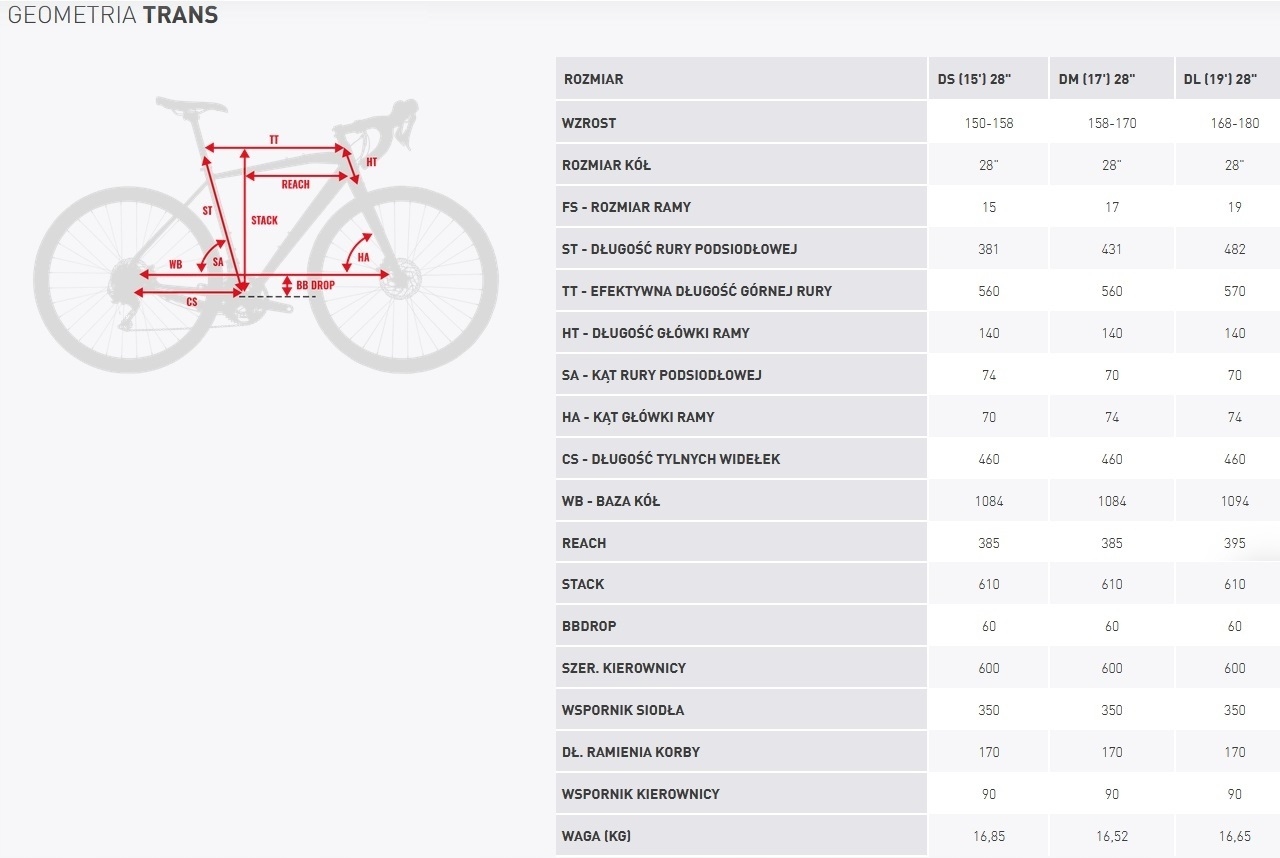 Rozmiar ramy dedykowany dla wzrostu ok 158-170cm