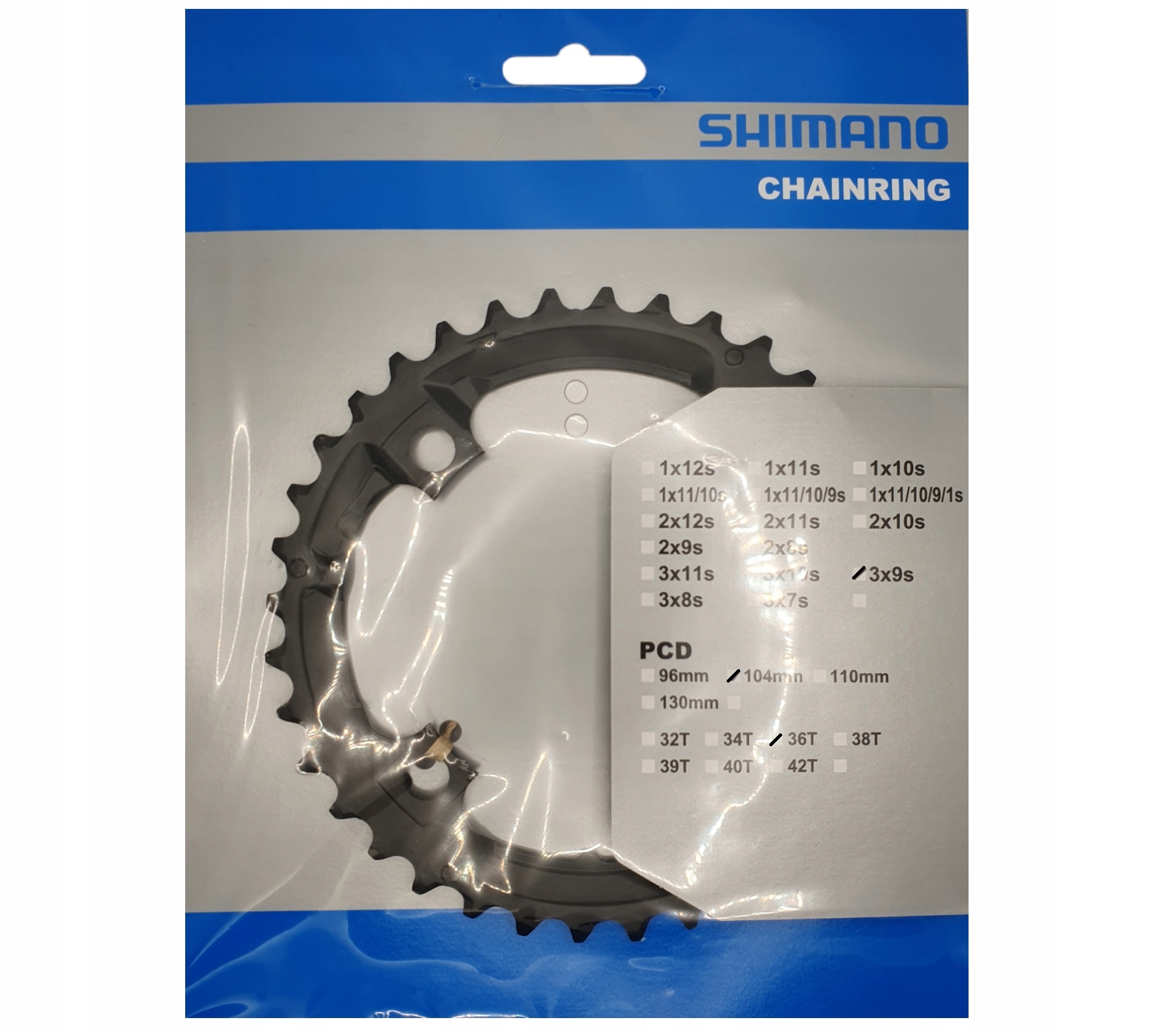 Zębatka SHIMANO 36t 104mm symetryczna do mechanizmu korbowego FC-M590.