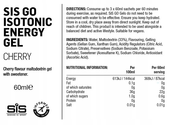 Spożywać do 3 saszetek na 60 minut podczas treningu w zależności od potrzeb. Żele SiS GO dla skutecznego działania nie wymagają popijania wodą. Należy pamiętać o odpowiednim nawodnieniu.